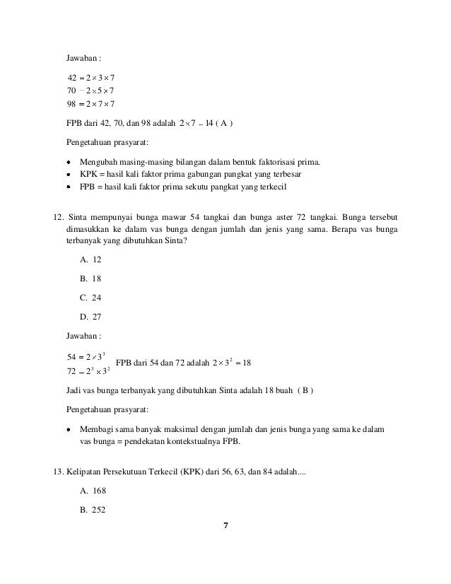 Fpb dari 36 dan 42 adalah.